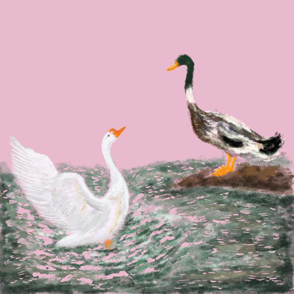 Once, my friend visited a museum and saw a flock of white geese in the museum’s courtyard. Jokingly, my friend mentioned that their duck might become friends with this group of geese. I asked my friend about the duck’s eventual fate, and they gazed at the surface of West Lake, murmuring, “Perhaps it will be released into West Lake, living as a joyful wild duck.”