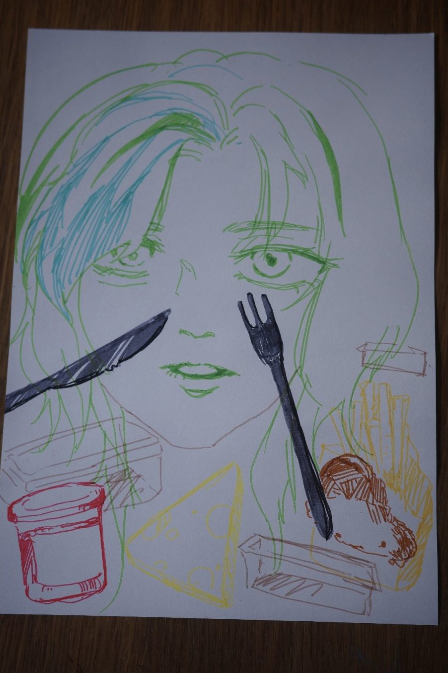 The main activities are divided into two parts. In the first part, participants will be provided with paper to create their self-portraits. They will incorporate the image of their recent meal or use symbols of animals or plants to express their current emotional state. This drawing phase is expected to last for approximately 30 minutes. After completing their portraits, participants will have around 5 minutes to share and explain their artwork with others.