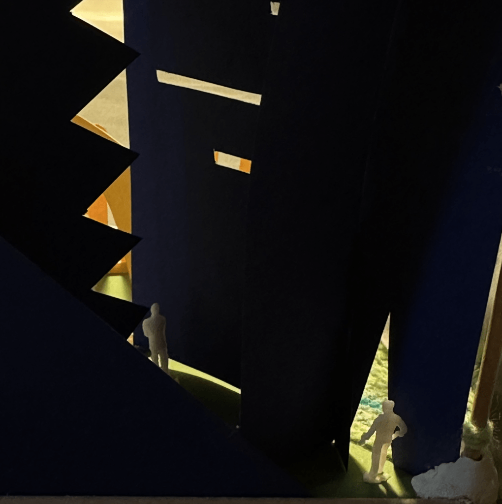 “Sick” is the darkest and most complex part of the model. Bruder Klaus Field Chaple, The chapel design by Swiss architect Piet Zumthor, inspired this part. In this part, I aim to create an intense and depressed space. Therefore, it has a narrow and sharp space inside.