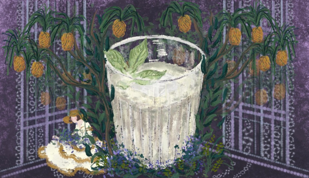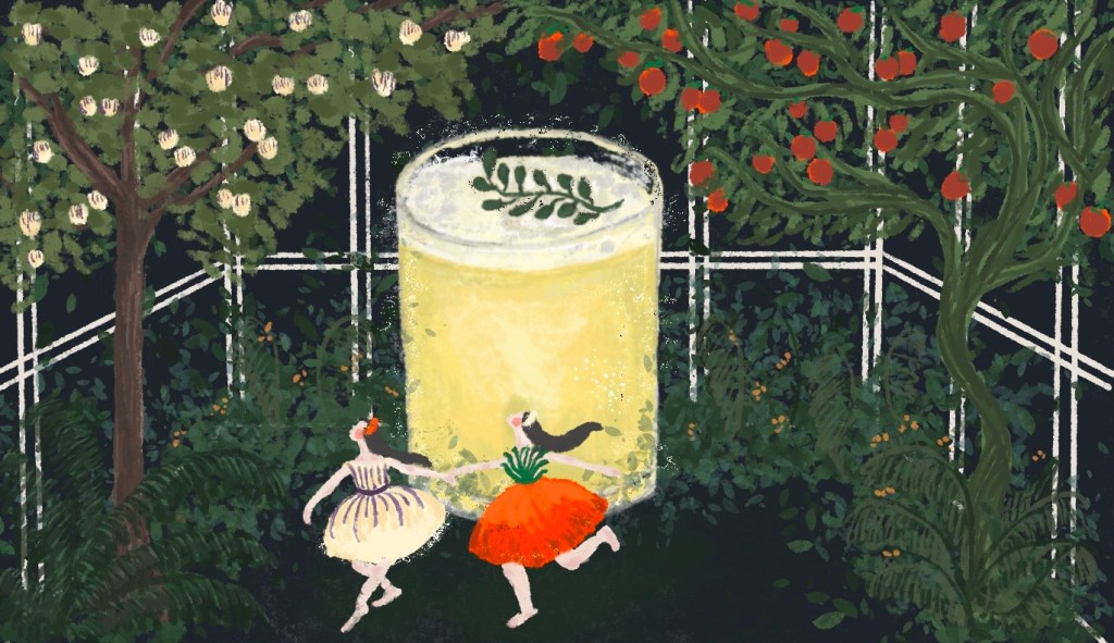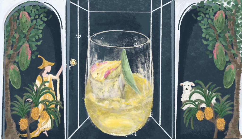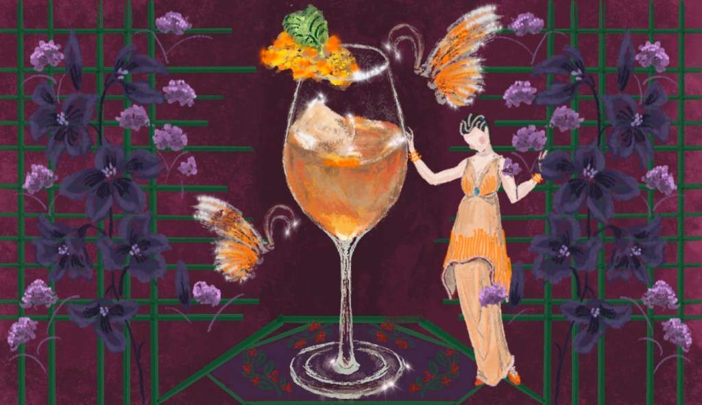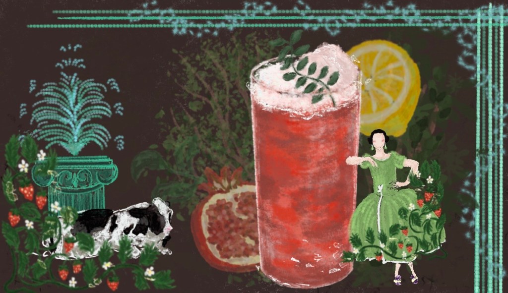 When I started preparing the illustrations for tea-infused cocktails, I found myself constrained by traditional styles, which often resulted in unsatisfactory outcomes. However, as time went on, I began to broaden my creative approach and introduced new elements to the artwork, such as diverse architectural styles, characters, and floral motifs. Eventually, I successfully captured the imagery that resonated with my vision of these beverages. I believe this process is similar to Louis’ approach in crafting cocktails, where she captures the essence of different tea profiles and interprets them based on her own understanding, resulting in a diverse range of creations.