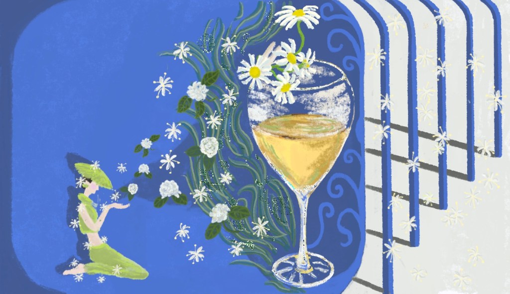 正如叙利亚诗人阿多尼斯所说:“他了解的中国,不是线条的纵横,而是光的迸发。”这句诗描述了对中国的理解,它超越了表面的形式,而是揭示了内在的光芒和独特之处。在我的插图中,我试图通过引入多样的元素和风格,展现茶酒的丰富多彩和独特魅力,以更好地表达茶与酒的融合之美。